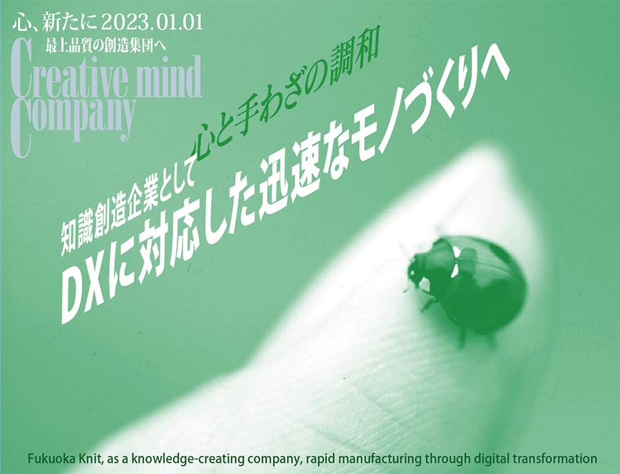 福岡ニットは、熟練した職人の技により洗練された品質を創り出すと共に、日々の知識と経験を積み重ね、資産として参りました。これらの経験は、手わざが育むコツと智恵を「心と手わざの調和」として、ニットの豊かな可能性と多彩なバリエーションを編み出しています。永らく積み重ねた経験知は、知識産業としての福岡ニットへと飛躍を促しています。そして積み重ねた知識と技術が、最上の品質を生み出す新たなダイナミズムを構築しています。社内スタッフの迅速な情報共有により構築された経験知は、重要な製品情報として充実しつつあります。福岡ニットの高度な経験知と専門性によるデザイン思考は、フィジカルワークとしての製品製造から熟練の技術と知識を収集し、かつデータとして蓄積することを促しています。